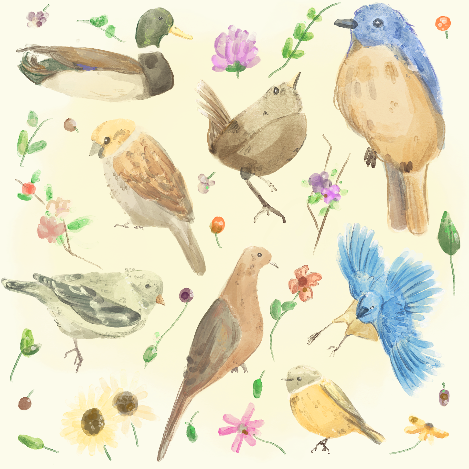 Birds & Flowers